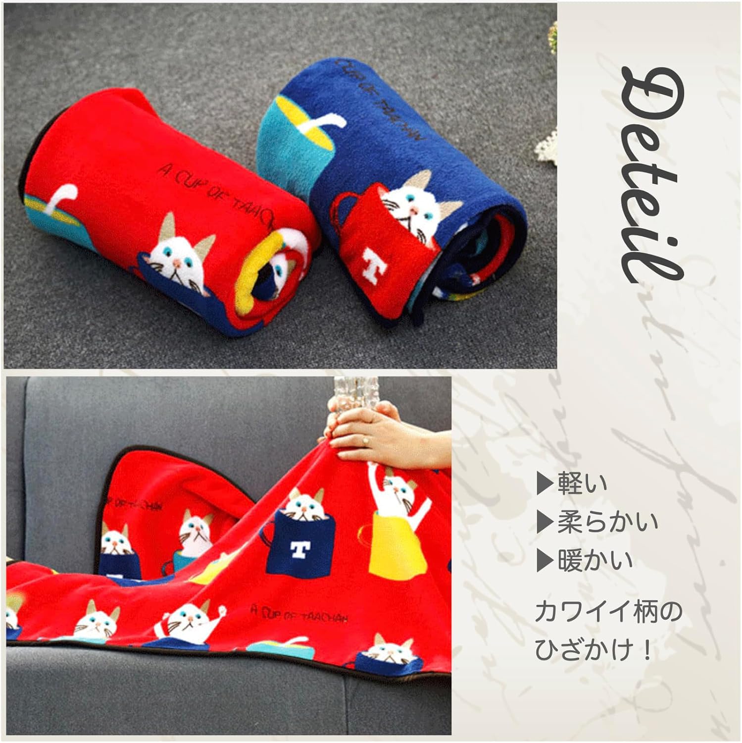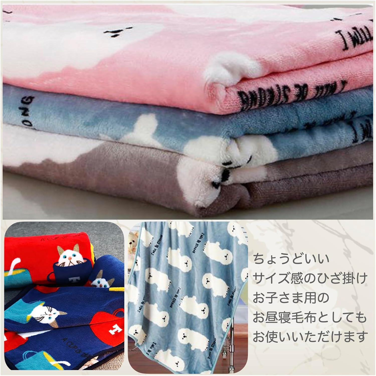 觸感輕盈,溫暖舒適,上面印有可愛的圖案的毛毯。